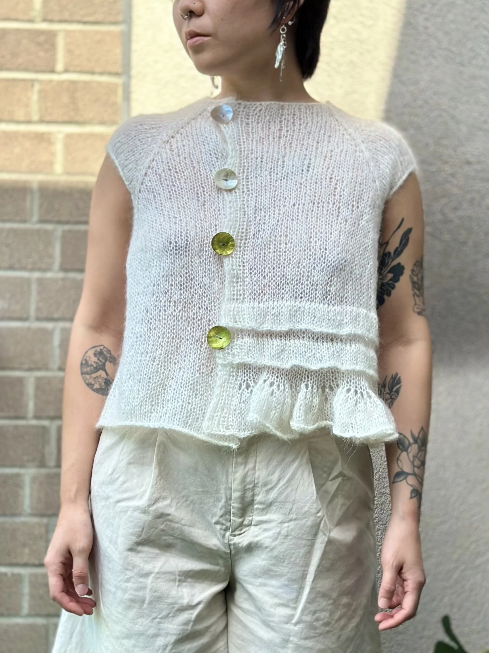 tie top $85.00 swim in care top $125.00 love letter top $145.00 portal top $120.00 Sold out stripe cardi $250.00 stripe microshorts $82.00 moss in the clouds top $150.00 balacalava $75.00 leg warmers $52.00